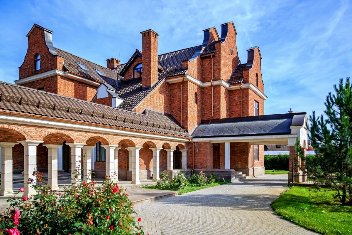 Монументальный дом в поселке Заречье расположен в элитном месте. При строительстве 2000 кв.м. здания были использованы лишь высококачественные материалы. Не экономили и на внутреннем убранстве – хозяева особняка за 3,8 миллиарда рублей получили возможность пользоваться спа-комплексом и бассейном в ежедневном режиме.