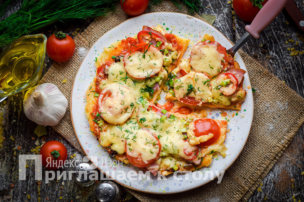 Готовится она моментально, бездрожжевое тесто замешивается за пять минут. Количество начинки самое разнообразное, и, главное, сыра можно положить, сколько душе угодно.