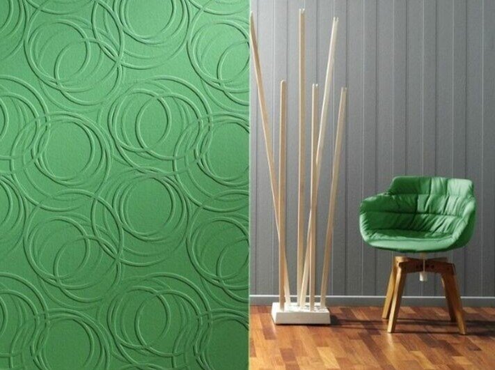 Главные преимущества такого способа отделки- простая поклейка, практичность, возможность влажной уборки. Выбрать можно или белые, или уже цветные обои, однако если планируется окраска после поклейки, тогда нужно брать именно белые- выбранный тон краски в этом случае будет точно совпадать с образцами.