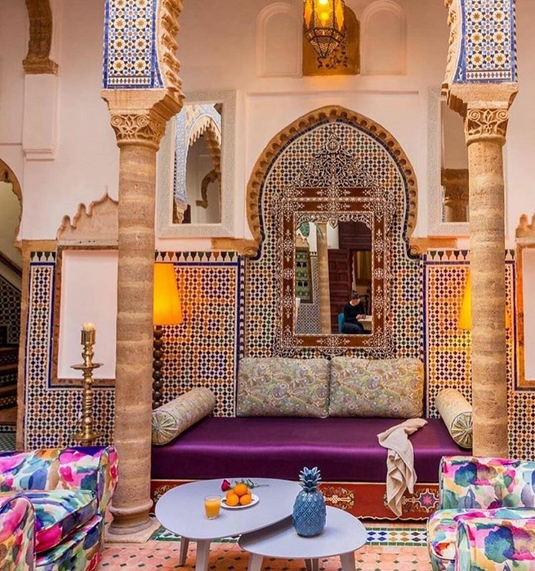 Riad – традиционный дом в Марокко, обычно с двумя или более этажами вокруг двора в андалузском стиле, в котором есть фонтан. Риады были величественными городскими домами самых богатых граждан, таких как торговцы и придворные.