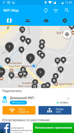 В моей жизни часто бывают какие-то тупняки и задержки, не редки случаи, когда я договариваюсь с друзьями куда-нибудь поехать, в итоге приезжаю в абсолютно незнакомое место и понимаю, что все они опаздывают, и что бы не сидеть просто так смотря в стенку или не тратить мобильный интернет на листание ленты или просмотр видео я зачастую пользуюсь картой WiFi, где другие люди загружают пароли, что бы Вы могли воспользоваться их WiFi.