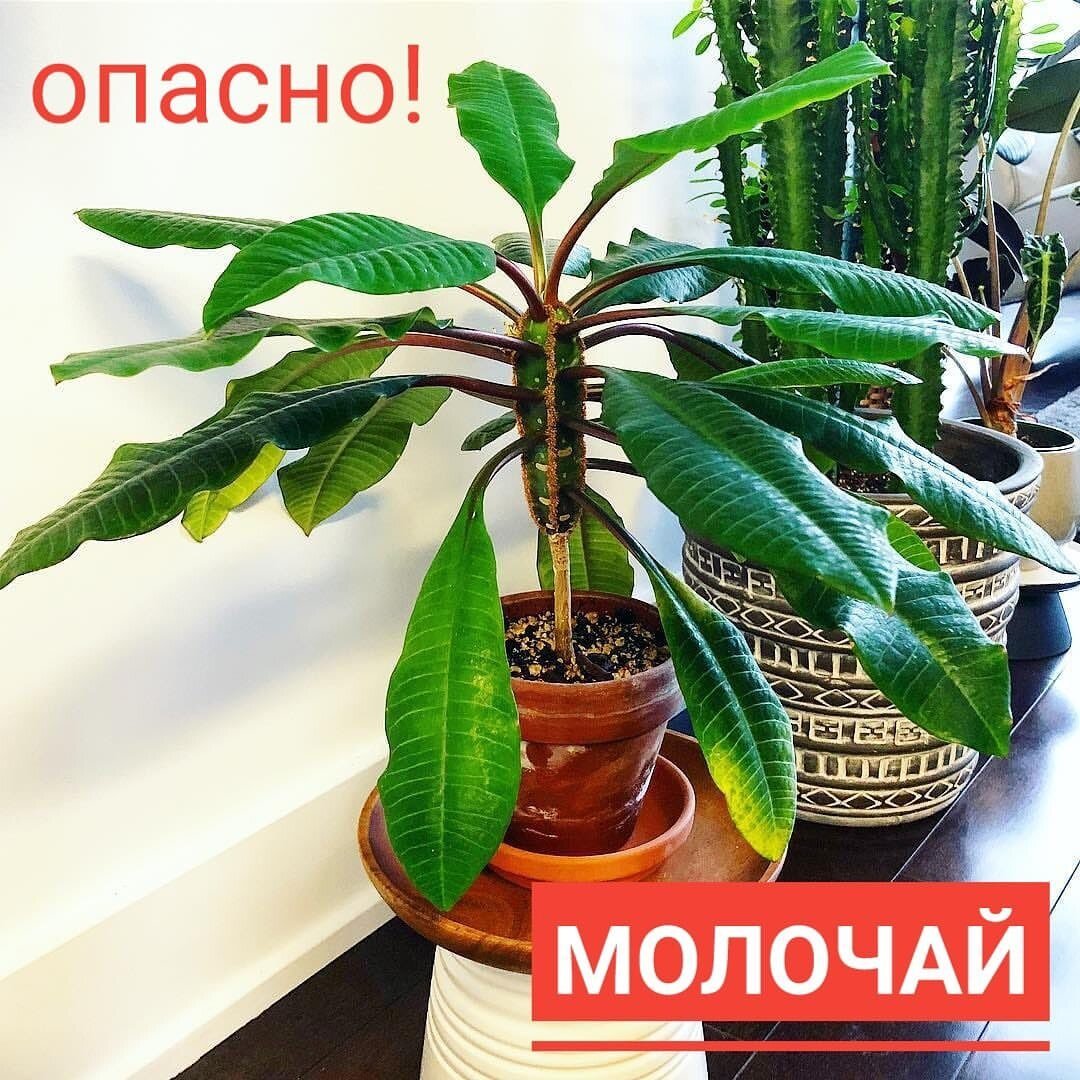 Сок молочая вызывает жжение на коже, опасен при попадании в глаза (ребенок оторвал листик и потёр рукой глаз). Может вызвать сильную рвоту у ребенка, если он пожует листик.