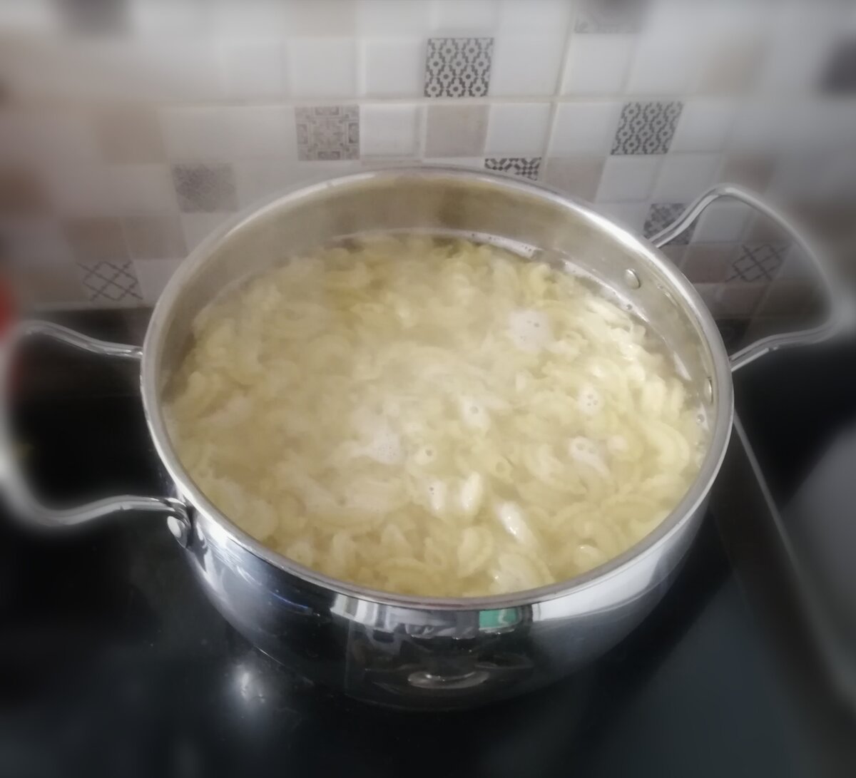 Макарошки как отварятся, промыть хорошо, разогреть и добавить к ним подлив.