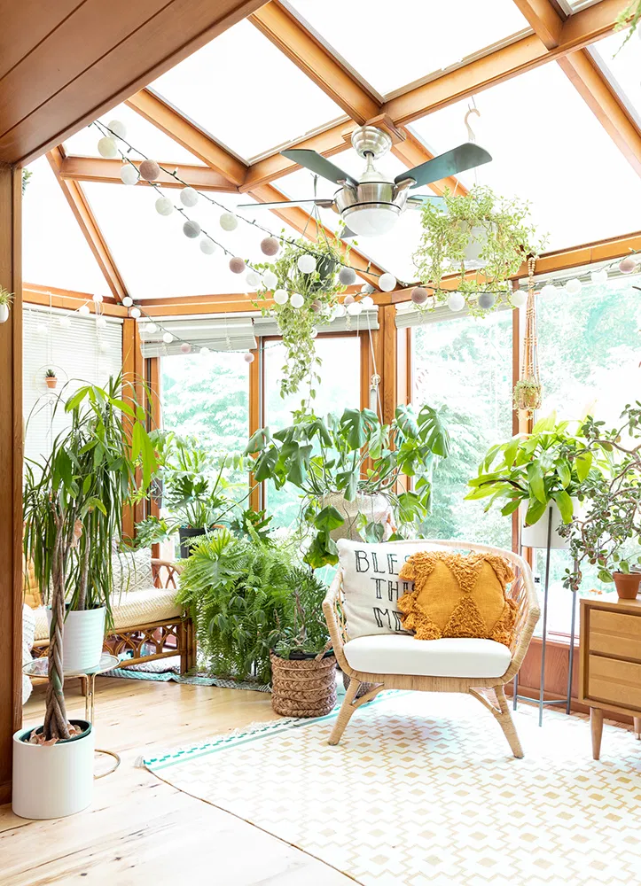 Светлый интерьер дома с акцентами из растений и природных оттенков