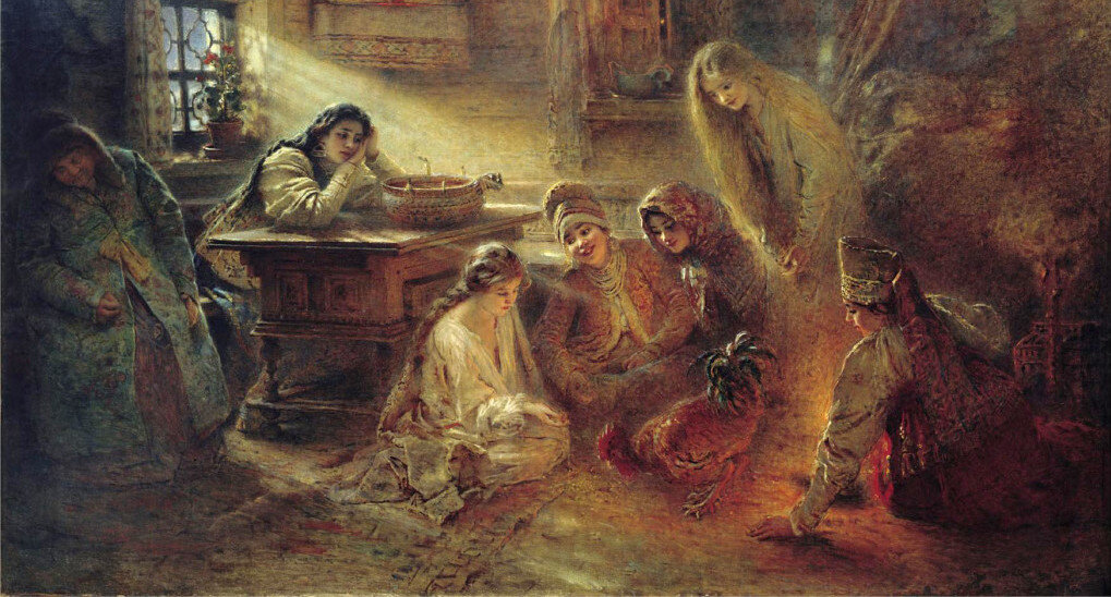 Гадания на Крещенский сочельник.Такие же сильные как и в Рождество Христово.Обычно ворожили перед сном,и ночью когда все спят.