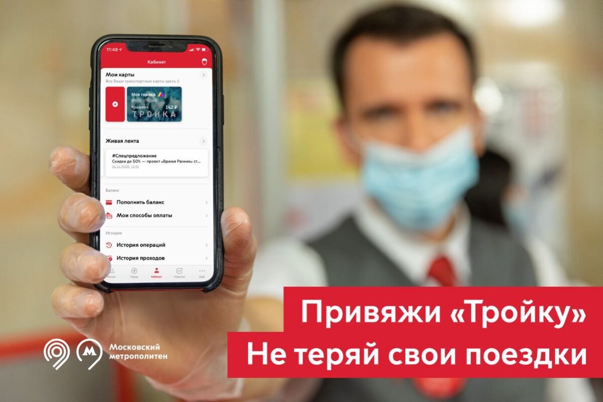 Чтобы вы не переживали насчёт утери «Тройки», в конце 2020 года мы добавили возможность привязки карты в личном кабинете приложения «Метро Москвы».