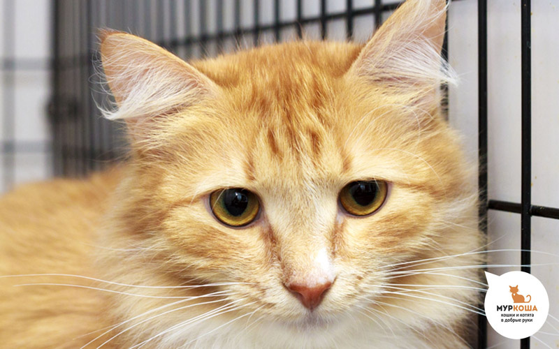 Елисей очень стеснялся подходить к еде на глазах у людей и отсиживался в стороне. Котик хорошо выглядел и даже имел модную стрижку с хвостиком-кисточкой, что навело на мысль, что котик потерялся или убежал. О найденном котике были развешаны объявления, но никто не отозвался. Тогда неравнодушные люди решили помочь милому рыжику найти новый надёжный дом, для чего и привезли его в adoption центр. 🐾