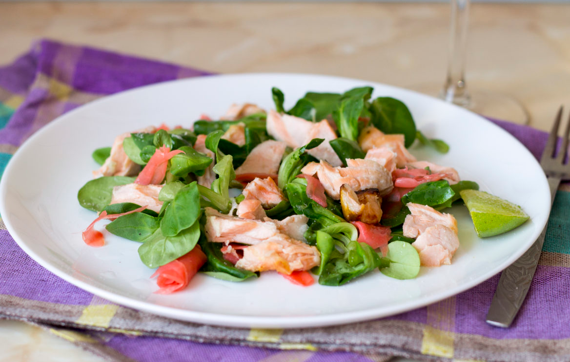 Прекрасный на вкус салат с курицей, маринованным имбирем и орехами кешью под медово-цитрусовой заправкой станет прекрасным началом дня.
