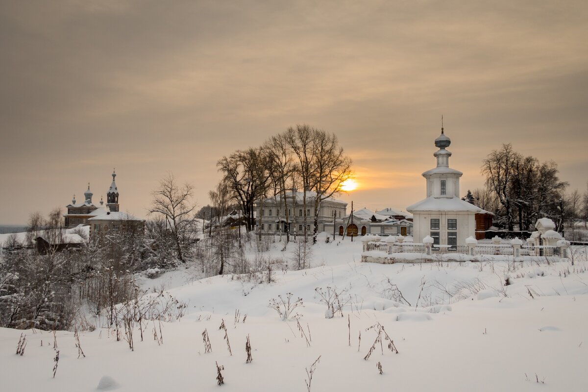 Мы в него на обратном пути заехали. Оно тоже с очень длинной историей. Основано ещё в 1472 году. Одно из древнейших на Урале. И оно тоже успело побыть столицей Перми Великой. Управление временно переносили сюда из Чердыни.
