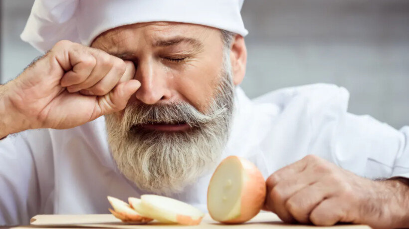 Чтобы не плакать, нужно понять, почему это происходит. Когда вы режете лук, происходит химическая реакция; вы повреждаете клетки лука, а выделяющийся фермент (синропанетиал-S-оксид) действует как слезотечение. Когда этот агент попадает вам в глаза, он смешивается с вашими слезами, образуя серную кислоту, и ваши слезные протоки активируются в попытке смыть загрязнение.