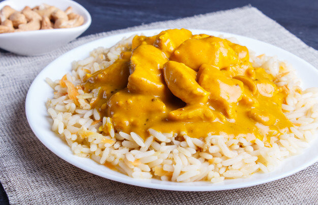 Это простое индийское куриное карри. Использование курицы на костях придает блюду более насыщенный и традиционный вкус. Содержит много специй, включая куркуму, кориандр, тмин и корицу, а также большое количество перца чили. Блюдо очень острое, подаётся с белым рисом как соус.