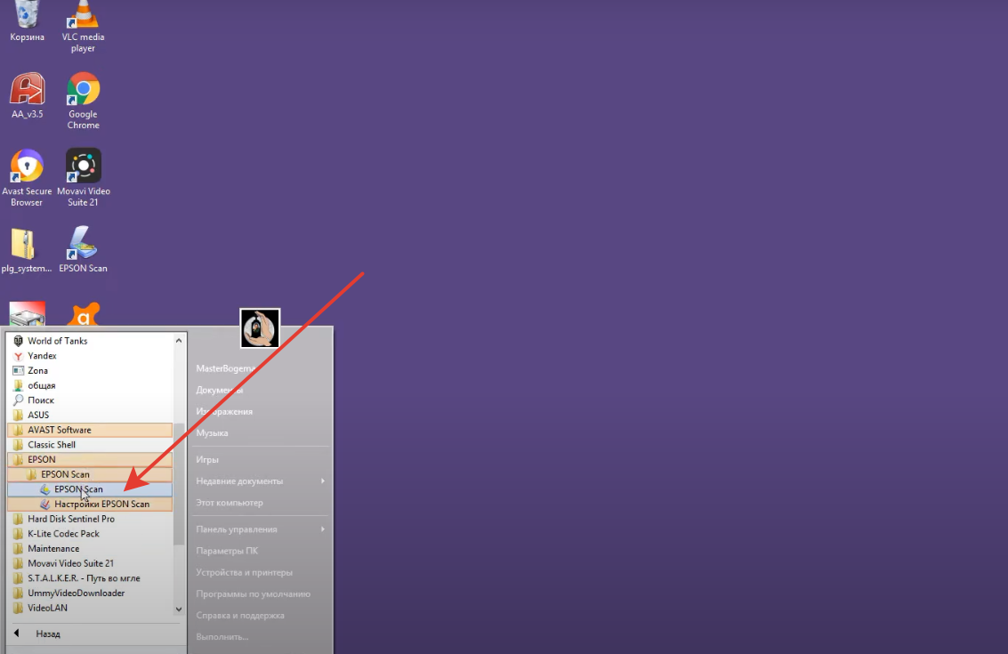 На компьютере зайдите в меню пуск > все программы > найдите название вашего сканера и нажмите на него.