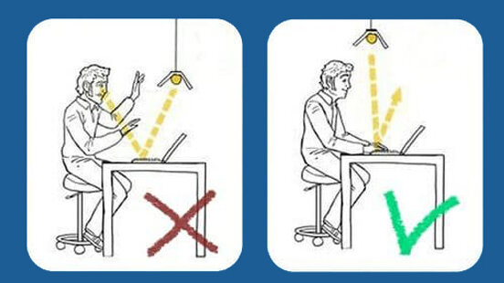 1. Важно, чтобы осветительный прибор правильно располагался и не светил в глаза