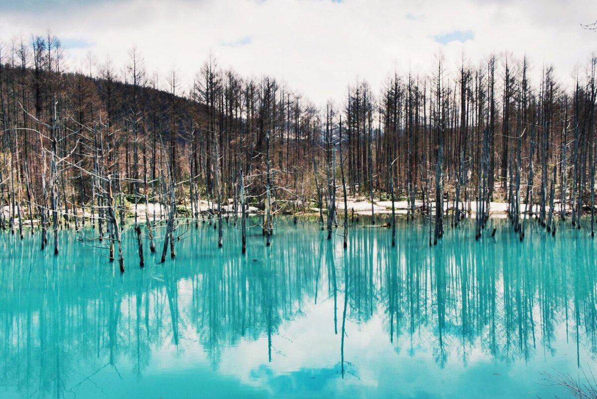 Биэй, Япония, является домом для потрясающего сапфирово-синего пруда, усеянного скелетами мертвых берез. Он выглядит так, будто это владения бессмертной феи, которая с радостью исполнит вам несколько желаний, если вы настигните ее зачарованные владения. Голубой пруд Широгане возник после извержения вулкана в 1988 году. Река Биэй была изменена, чтобы не дать потенциально разрушительным селевым потокам на горе Токачи, достичь близлежащих городов. Яркий цвет Голубого пруда - результат минеральных отложений. Как и в светящихся минеральных бассейнах Йеллоустона, плавание в Голубом пруду строго запрещено, поскольку его воды токсичны для людей. Скорее всего, вы будете так очарованы сюрреалистической бирюзовой водой Голубого пруда, что ныряние и купание покажутся кощунственными. Голубой пруд, как известно, имеет много разных насыщенных оттенков синего в зависимости от сезона.