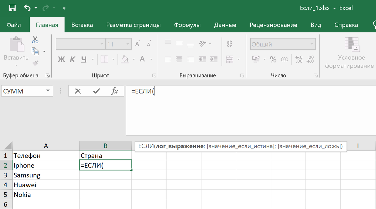 Рассмотри принцип работы этой функции на примере. Нам нужно подтянуть значение страны производителя для модели телефона. Синтаксис формулы ЕСЛИ составляет: логическое выражение, значение если логическое выражение ИСТИНА, значение если логическое выражение ЛОЖЬ. Функция проверяет логическое выражение и выводит значение или ИСТИНА или ЛОЖЬ, которое мы указали.