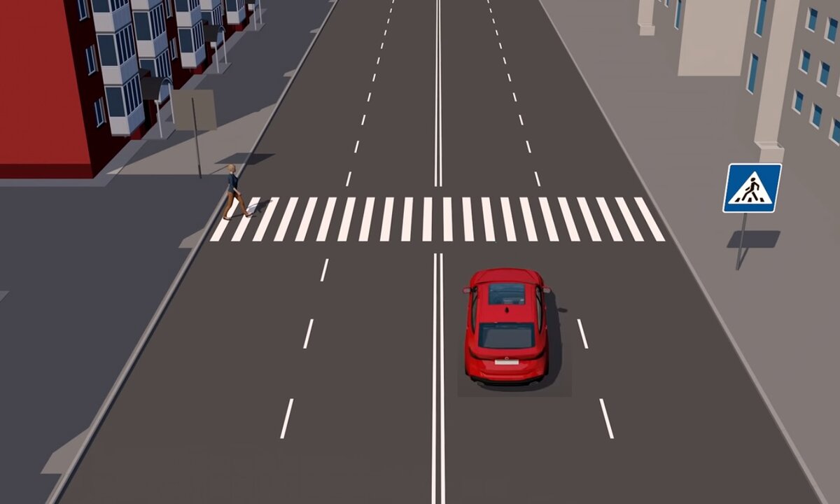 Логично рассуждать, что если пешеход только вступил на проезжую часть для осуществления перехода, и расстояние как у нас рисунке более 1 полосы, то о помехах и говорить не имеет смысла.