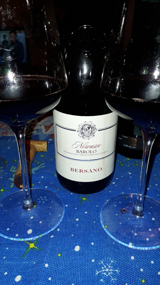 Здравствуйте, дорогие друзья! Представляем вам обзор красного сухого итальянского вина Bersano "Nirvasco" Barolo. Производитель достаточно солидный и его вина стоят недёшево, тем более Бароло. Bersano Barolo было приобретено на давнишней распродаже в сети супермаркетов Перекрёсток, дешевле полутора тысяч рублей. Скидка составляла намного больше пятидесяти процентов. Страна производитель: Италия, Пьемонт Изготовитель: Bersano Vini S.p.A. Год урожая: 2010 Дата розлива : 19.04.2016. Сорт винограда: Неббиоло Крепость: 14% Сахар: Сухое Выдержка: не менее 36 месяцев в дубовых бочках Аромат: ярко вишня и спелая слива, есть полевые мотивы, немного ванили и дуба. Вкус: высокая плотность, танинов уже не так чтобы много. Кислотность есть, но в меру. Во вкусе вишня и клубника. Сочно и плотно. Итог : Bersano "Nirvasco" Barolo - хорошее качественное вино, интересно пьётся и доставляет удовольствие. Ожидания были более яркими, но возможно, ещё слишком мало опыта для таких вин. Может