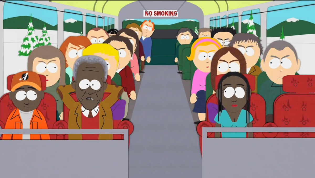 5 сезон 12 серия "Приходят соседи" Токена все дразнят за то, что он богат, тогда он приглашает богатых людей в Саус Парк, чтобы найти себе компанию, но по случайному стечению обстоятельств все они оказываются чернокожими. Жителям городка такие совпадения кажутся странными... Стёб над расовой сегрегацией и социальными стереотипами.