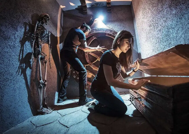 В этом квесте было очень много комнат и сложность была: два ключика и два черепа. Актеры так же там присутствовали. На этом квесте много эффектов и задач было, но когда актеры, решить задачки было сложнее.