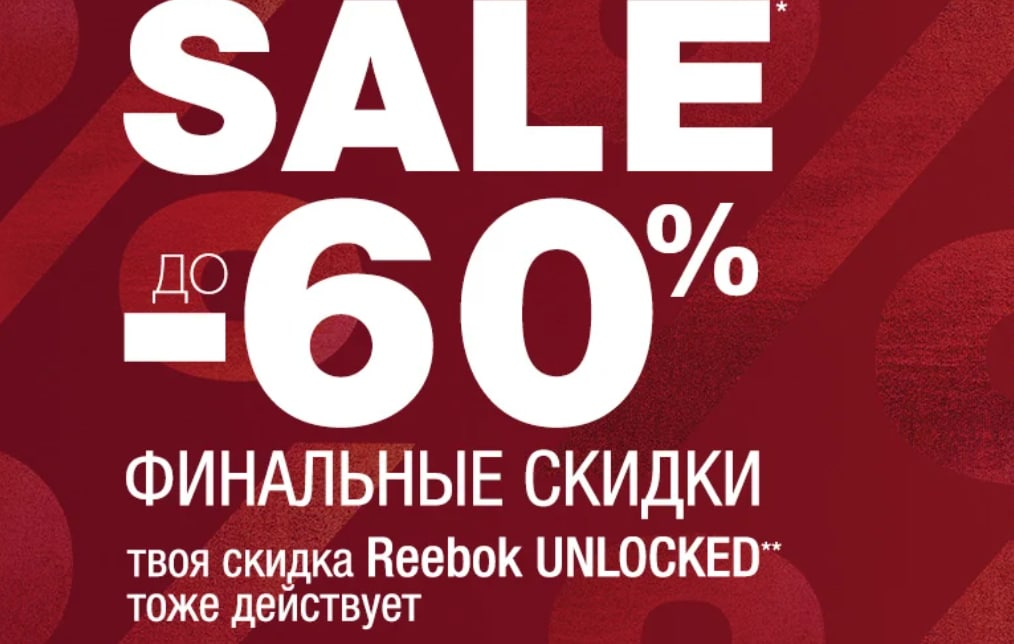 Одеваемся в Reebok со скидкой до 60% + 10% за подписку на рассылку