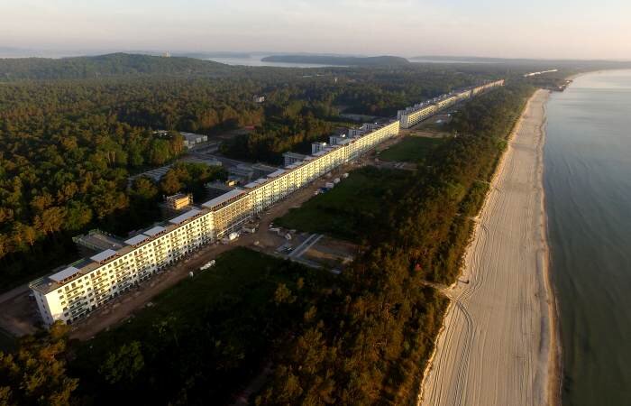 Несмотря на всю жестокость, которую творил Фюрер в годы Великой Отечественной войны, найдутся все же вещи, которые достойны уважения. Например, гигантский отель для немецких рабочих, который начали строить в 1936 году в живописной местности между Балтийским морем и Ясмундским заливом. Отличительной особенностью Третьего Рейха была гиперболизация всех проектов, за которые он брался. Это коснулось