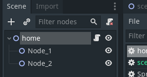 Для примера начем с классической схемы - скрипт подключен в корневой ноде. А под ней находятся две ноды - нода_1 и нода_2.