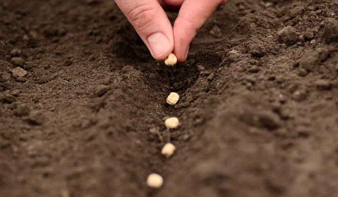 Важно соблюдать глубину посадки семян. А она зависит от размера и структуры посевного материала. Например, семена редиса легкие и мелкие, поэтому их можно просто рассыпать на поверхности и слегка присыпать землей. А вот горох так сажать нельзя, предварительно нужно сделать небольшие лунки, в которые будут помещаться семена.