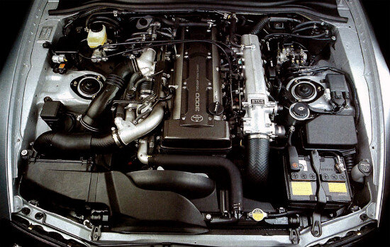 Технические характеристики. На «Супре» 4-го поколения можно встретить исключительно бензиновые силовые установки – автомобиль комплектовался рядными шестицилиндровыми агрегатами объемом 3.0 литра (2997 кубических сантиметров) с 24-клапанным ГРМ типа DOHC и распределенной подачей топлива. Под капотом базовых версий спорткара размещен атмосферный двигатель, развивающий 225 лошадиных сил при 6000