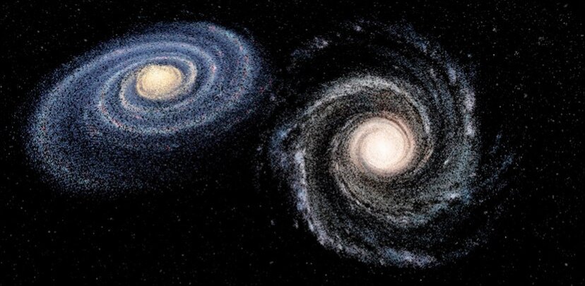 Галактика «Андромеда» приближается к Млечному Пути со скоростью 100 км/с, а это значит то, что через 4,7 млрд. лет она по касательно столкнётся с галактикой «Андромеда».