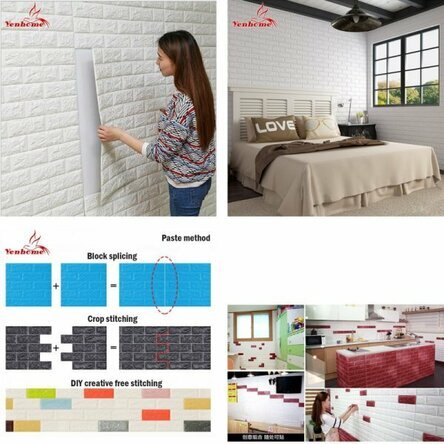 Самоклеящаяся панель 3D Кирпич (12 цветов, 70*15 см, 70*38 см, 70*77 см, водонепроницаем.)