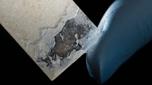 Переходя вперед и назад между двумя процессами, ученые создают последовательные чередующиеся слои кальция и полимера. Финальное покрытие более жесткое, чем большинство пластиков, но достаточно легкое и гибкое. Но способ не быстрый – один слой кальций/полимер занимает около одного дня для синтеза, а его толщина всего 5 микрон.