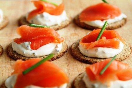 Ищете вкусную закуску из морепродуктов, которая произведет впечатление на ваших гостей? Лососевые канапе — вот то, что надо! Классическое сочетание копченого лосося и сливочного сыра, увенчанное веточкой укропа или лука поверх крекера или поджаренного хлеба! Если вы не хотите тратить время на поджаривание хлеба, просто используйте крекеры или даже маленькие блинчики для основы.