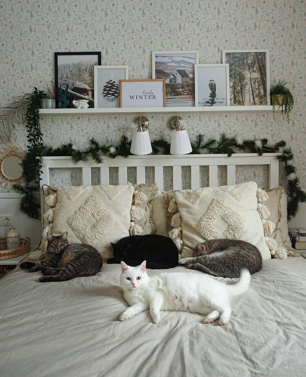 Кровать у нас 160 на 200. Этой ширины нам с мужем вполне хватает, и даже по утрам помещаются 1-2 младенца плюс неограниченное количество кошек😁))