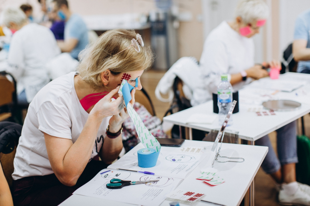 Коррекция морщинок на лице с помощью кинезиологических тейпов