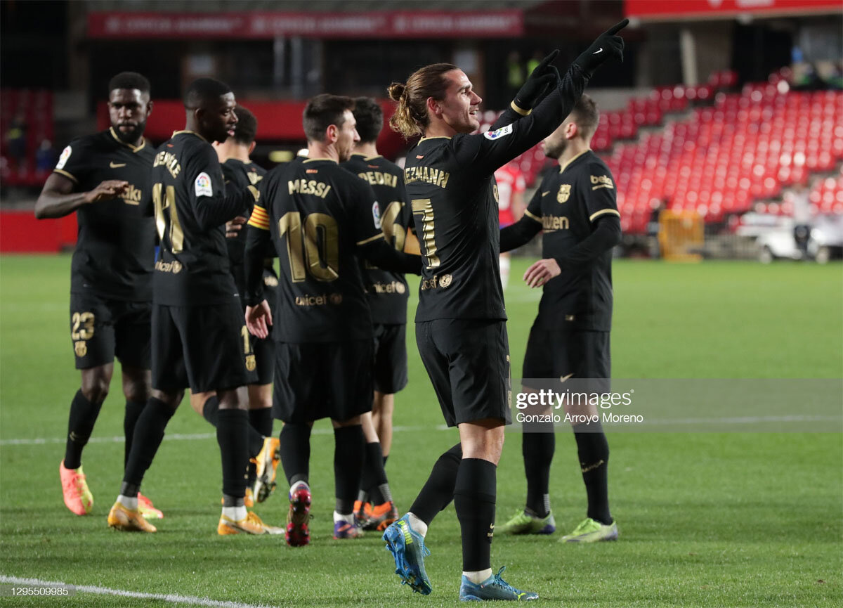 Адаптация француза в "Барселоне", мягко говоря, затянулась, но конкретно сегодня Гризманн сыграл ключевую роль. Пусть и не без удачи Антуан открыл счёт после отскока от Сольдадо, зато потом помог Месси забить важный второй гол и завершил разгром "Гранады", забив эффектный четвертый мяч с острого угла.