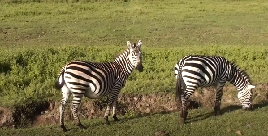 Поэтому зебрам приходиться постоянно находится в состоянии опасности, ожидая, что она притаилась за любым кустом. За долгие годы такого существования у животных выработался рефлекс. Лишь только они услышать любой шорох, тут же несутся без задних ног.