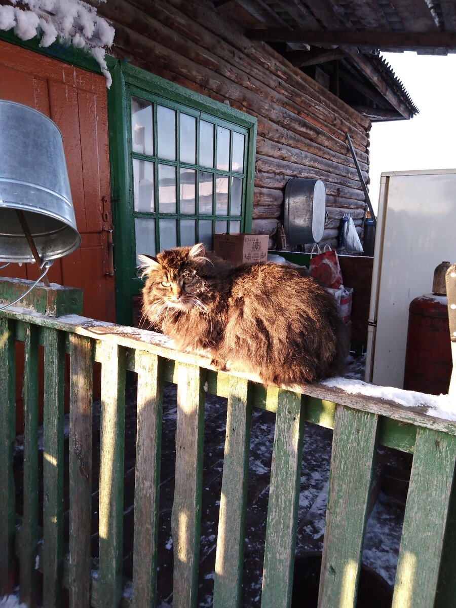 Коты греются на солнце. На улице 46гр мороза. Обратите внимание - какой взгляд. А на последнем фото, серьезная сибирская братва, это вам не муси-пуси. Не нравится, что фотаю. Эти коты живут на улице. Хозяева их кормят, но в дом они не заходят. Живут в пригонах с овцами, коровками. Казаки они вольные, живут по своим правилам. Людям не особо доверяют.
