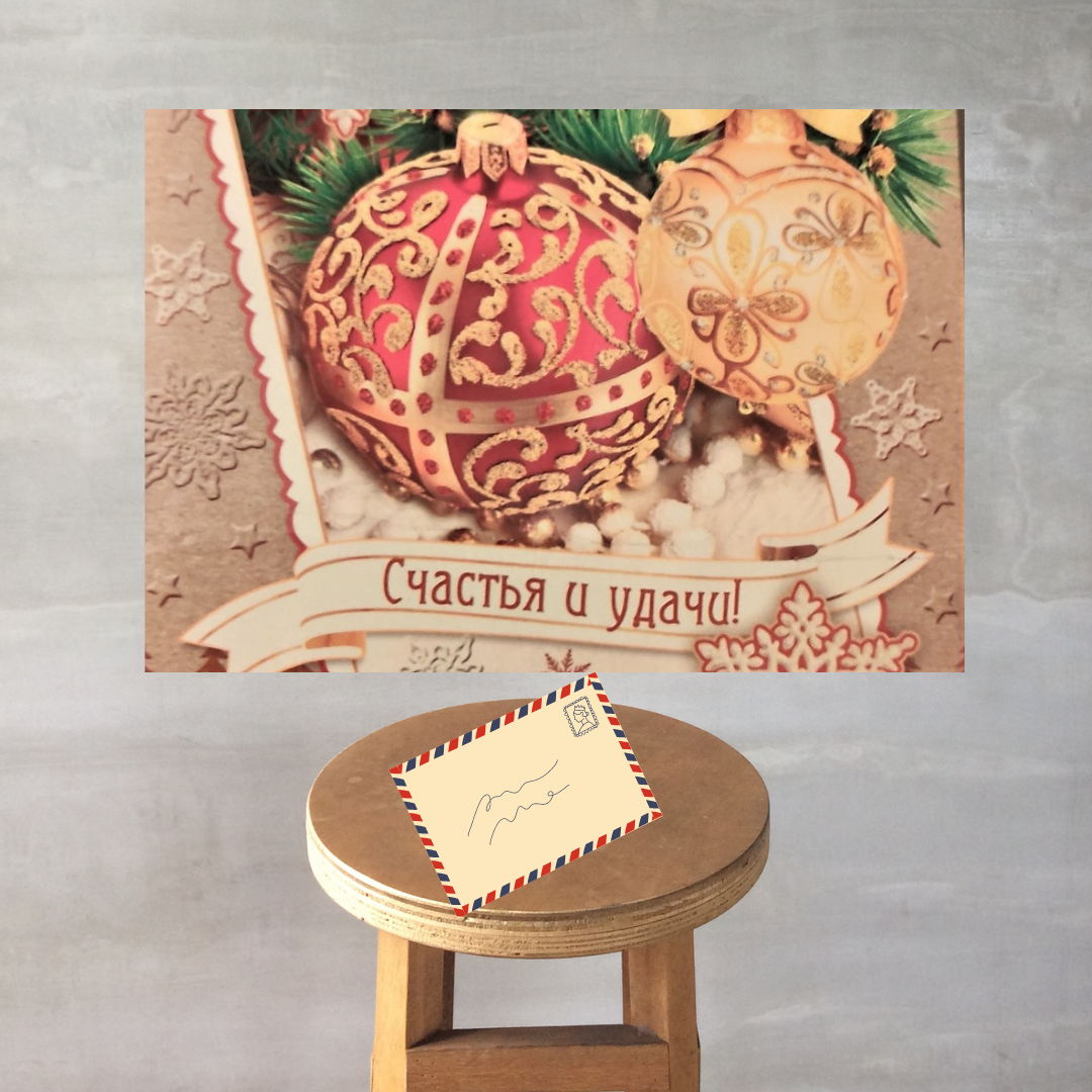 Бедная маленькая новогодняя открытка оказалась помята. Но самое ценное, всё же не в этом, а в подписи от руки. Простые поздравления с новым годом. Но как же тепло от них! Дочь на радостях перехватила послание, залезла на табурет и торжественно «прочитала» поздравления всем членам семьи, включая кошку.