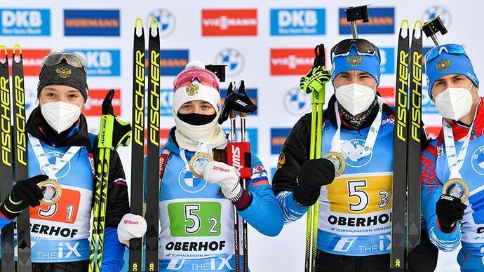 Российская дружина стала победительницей смешанной эстафеты в рамках 5-го этапа Кубка мира в немецком Оберхофе.