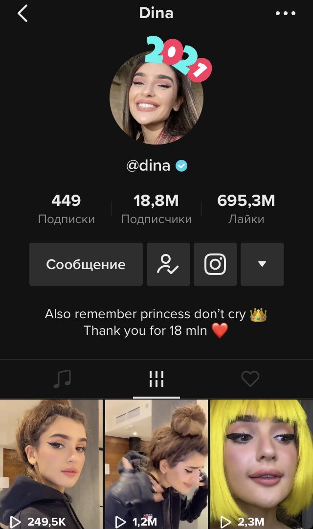Позже Periscope ей надоел, поэтому она перешла в Instagram и приложение Musically (потом его выкупил ТикТок). Уже там Дина стала популярной.