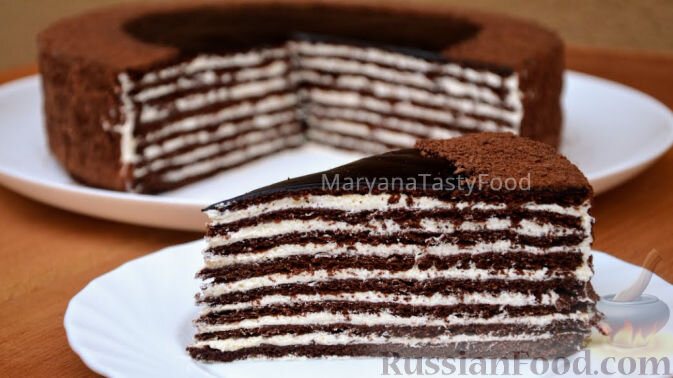 Продукты Для коржей: Мука (просеять) - 400-450 г Яйца - 2 шт. Молоко - 6 ст. л. (90 мл) Сахар - 200 г Масло сливочное (мягкое) - 100 г Какао (темное) - 50 г Мед жидкий - 3 ст. л. или мед густой - 90 г Сода пищевая - 1 ч. л. (5 г)*Для крема: Молоко - 400 мл Яйца - 2 шт. Пудинг (сухая смесь) (можно заменить крахмалом) - 1 пакетик (40 г)Сахар - 150-200 г Ванильный сахар - 10 г Масло сливочное (мягкое), для взбивания - 250 г*Для глазури (помадки):Какао (темное) - 30 г Сахар - 100 г Молоко - 75 мл Масло сливочное (мягкое) - 50 г