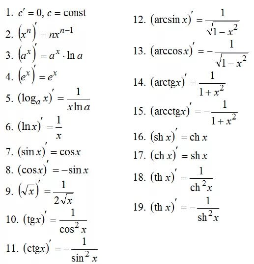 Для нахождения производноц, согласно определению, нужно составить отношение приращения функции и аргумента, а затем вычислить предел при стремящемся к нулю приращении аргумента. Конечно, можно вычислять все производные так, но на практике это слишком долгий путь. Ниже