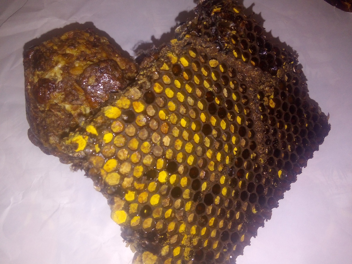 Пчелиный прополис представляет собой вязкое и клейкое вещество, состоящее из растительных соков, пыльцы и пчелиной слюны