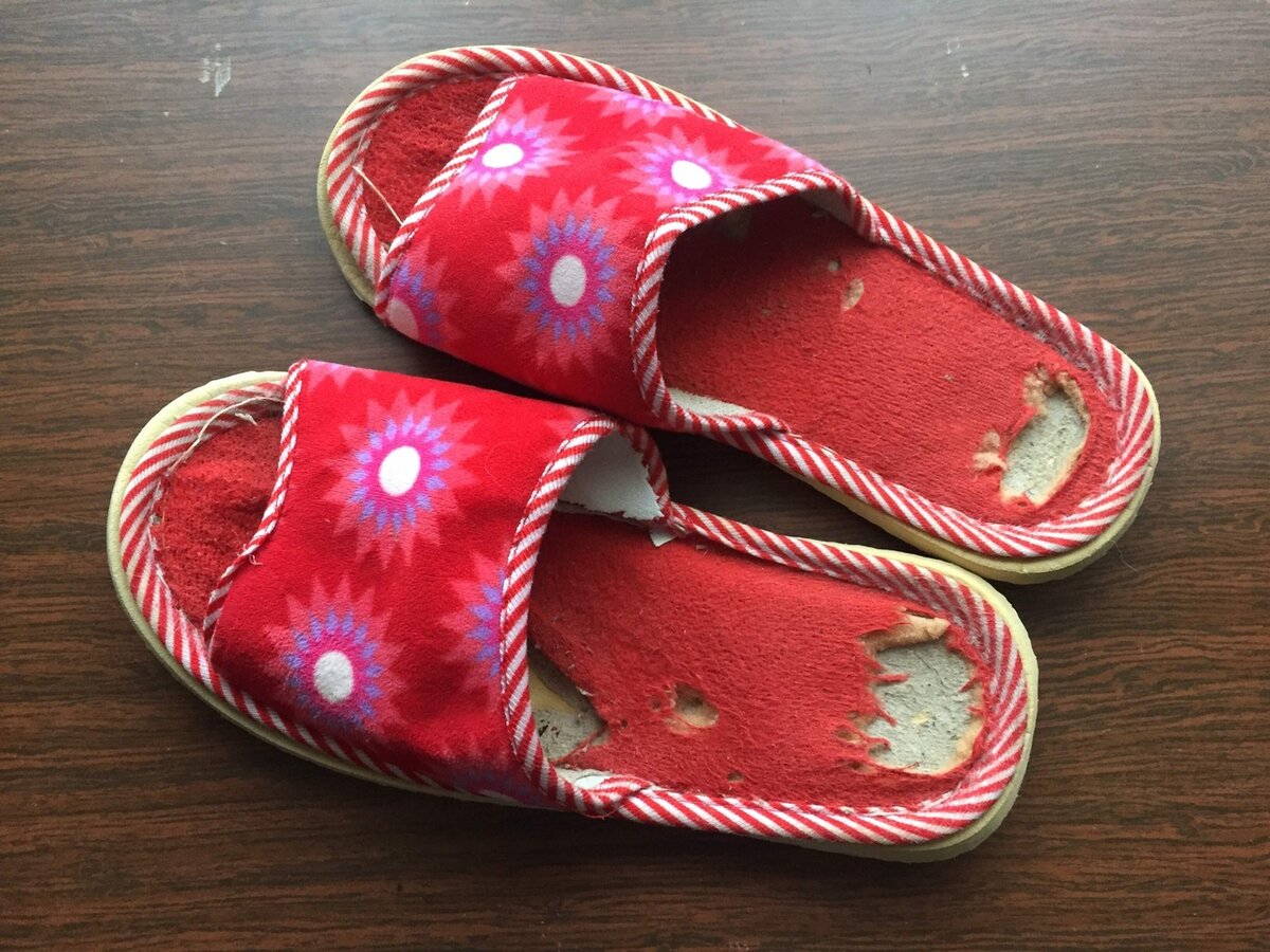 - пара изношенных тапочек