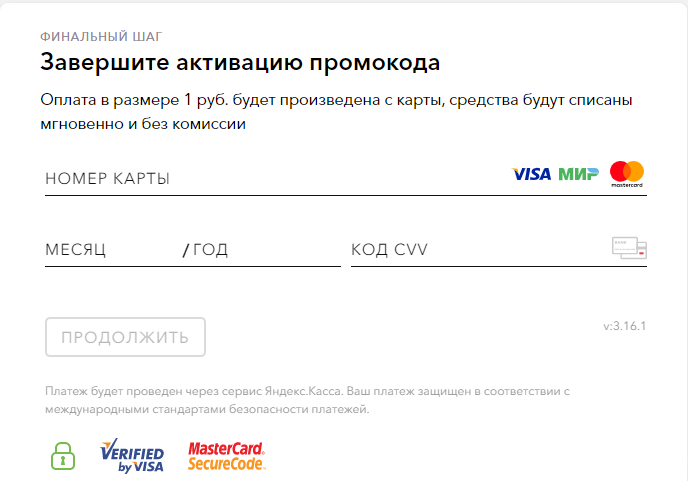 3) Вводим свой номер карты, с вас снимут всего 1 рубль: