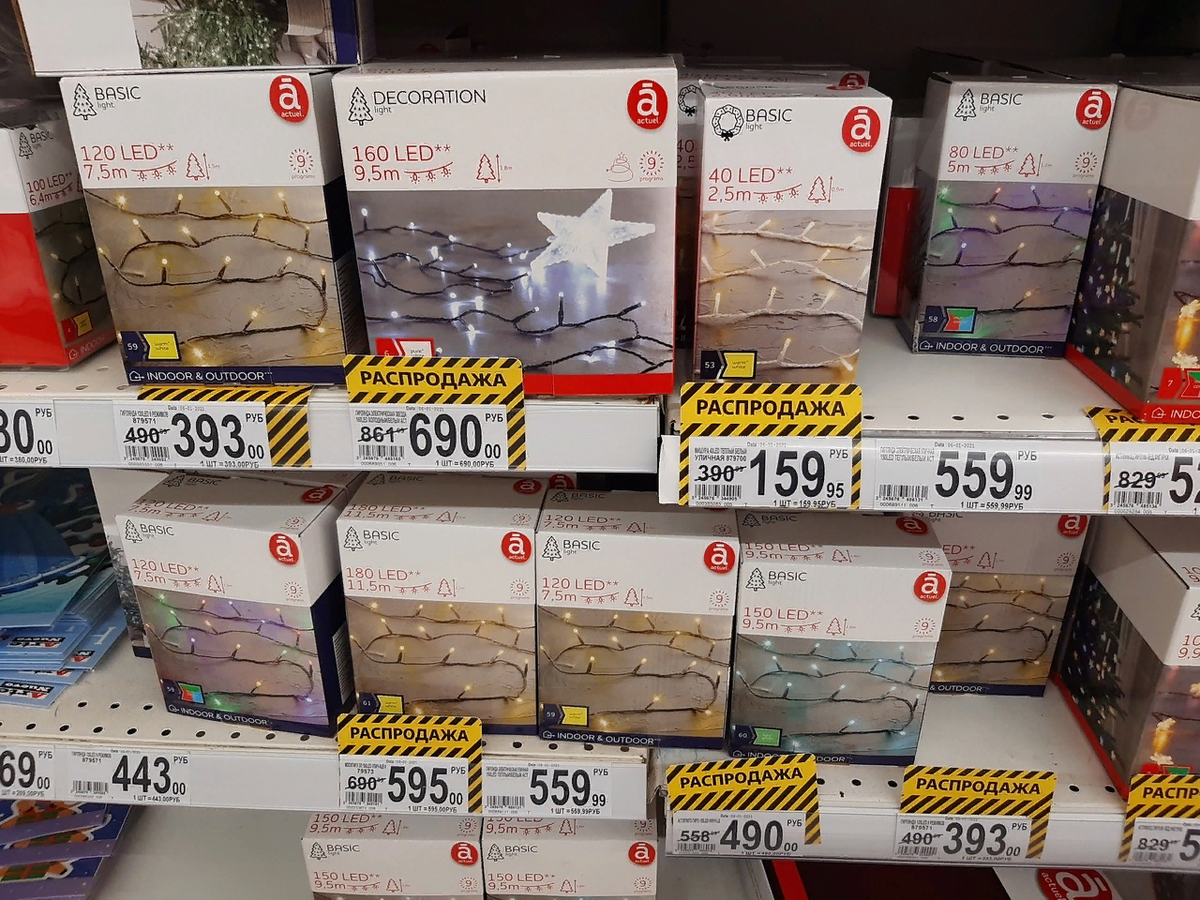 Скидки очень хорошие, даже не верится, что такая распродажа. Хотя еще долго нужны будут гирлянды.