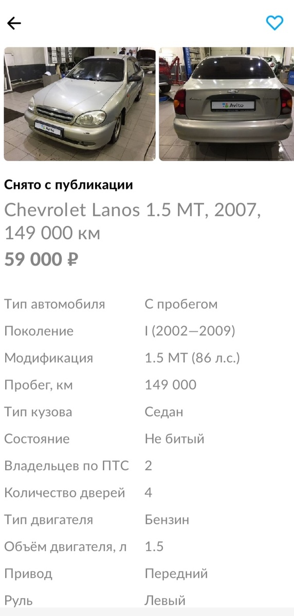 Около 8 вечера появилось на авито новое объявление. Продавал автосалон подержанный Шевроле Ланос, видимо сданый по программе Trade in.