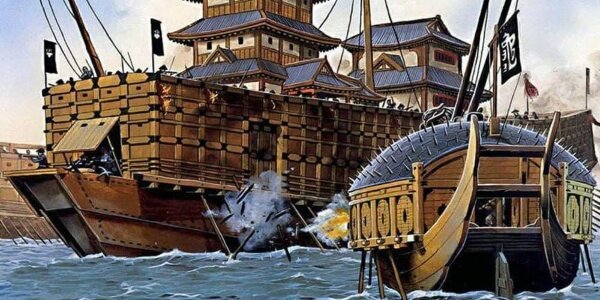 В 1592г плохой японский адмирал Хидэёси напал на хорошую Корею. Кореец Ли Сун Син опередил время на 263 года, создав обшитые железом (бронированные) корабли с железными шипами для тарана.