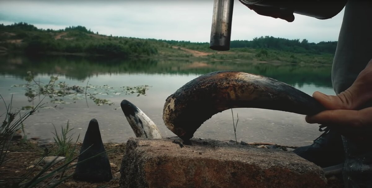 Для рыбалки купил коровьи рога и опалил их, потом ножом соскреб нагар и в виде прикормки поместил в место ловли.