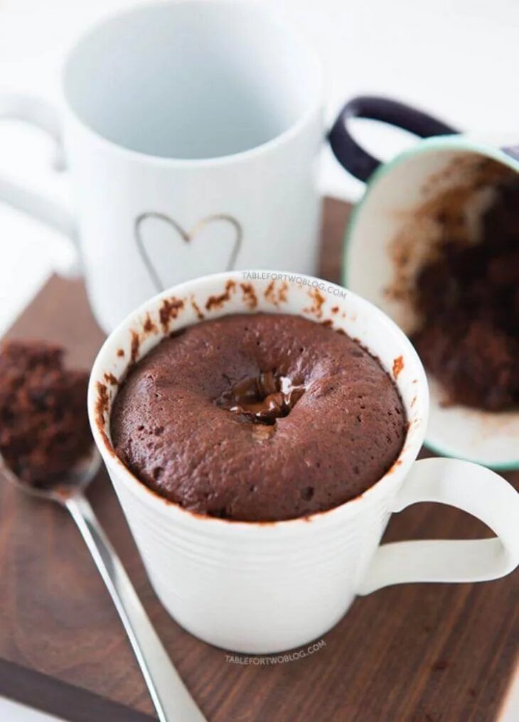 - Поставьте чашки в микроволновку. Готовьте шоколадные кексы 3 минуты при мощности 800 Вт.